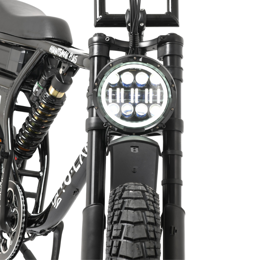 With a top speed of 50km/h and a max range of up to 90km, the Huntsman 1000W is made for riders who demand more – more power, more distance, and more freedom. The rugged aluminium frame, 20” x 4” fat tyres, and front suspension fork provide comfort and control across all surfaces.