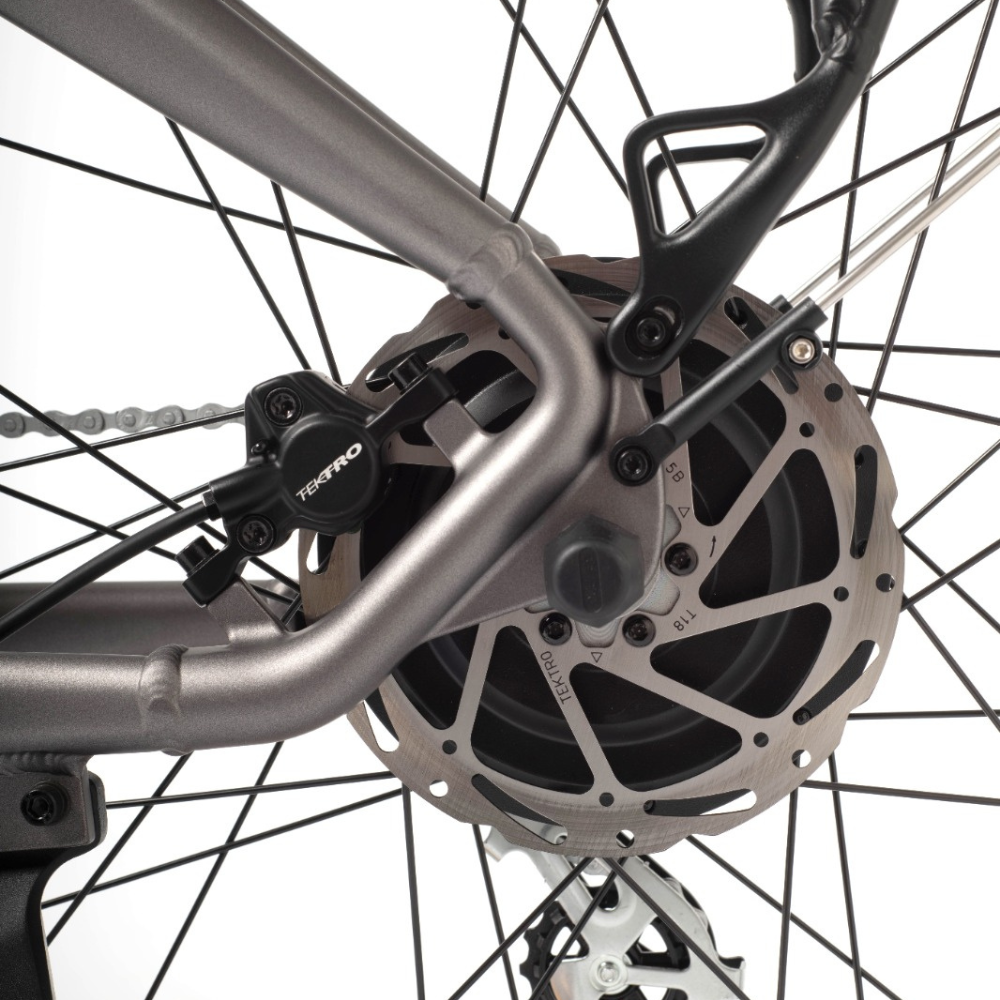 Powered with a continuous 500W (65Nm) brushless geared hub motor, you won't have to worry about carrying heavy loads and climbing steep uphills.